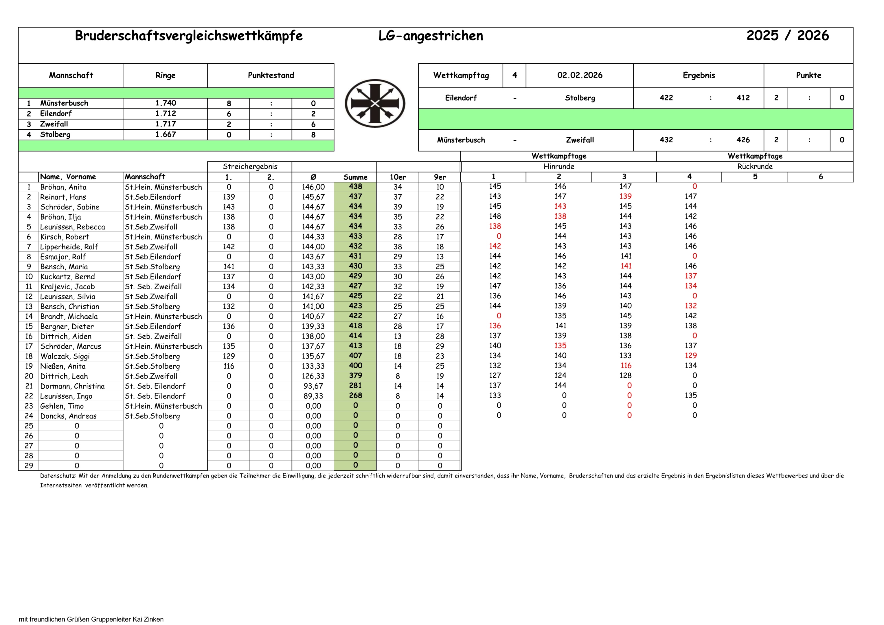 Ergebnisse der Rundenwettkämpfe 2025 / 2026